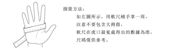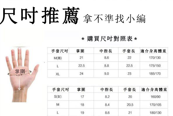 注意:選擇尺碼主要按掌圍選擇,一般誤差3.5毫米是正常範圍